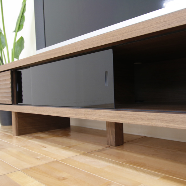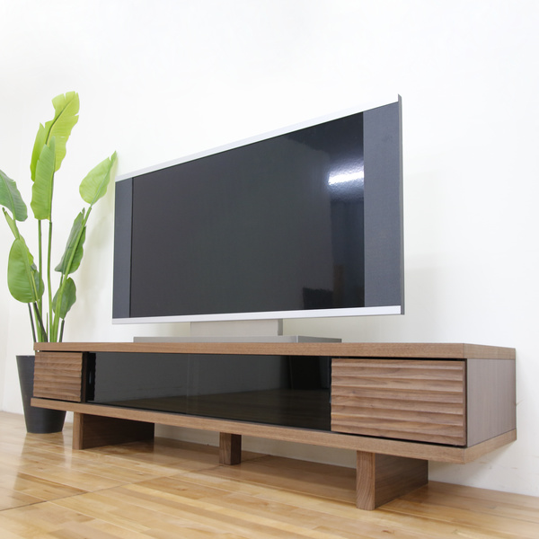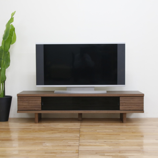 テレビ台 ローボード 天然木前板 ダークガラス引き戸 Ride 約幅158cm ウォールナット ( 開梱設置 テレビボード テレビ 収納 TV台 TVボード 日本製 完成品 TVラック AVボード 木製 モダン 高級感 国産 おしゃれ )