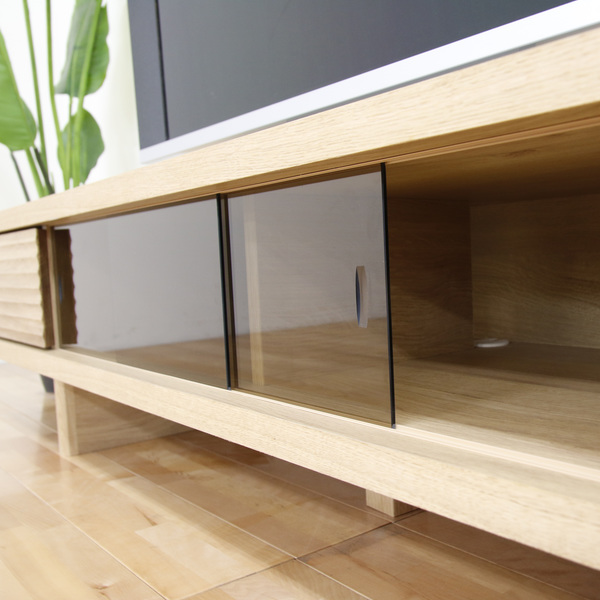 テレビ台 ローボード 天然木前板 ダークガラス引き戸 Ride 約幅198cm ホワイトオーク ( 開梱設置 テレビボード テレビ 収納 TV台 TVボード 日本製 完成品 TVラック AVボード 木製 モダン 高級感 国産 おしゃれ )