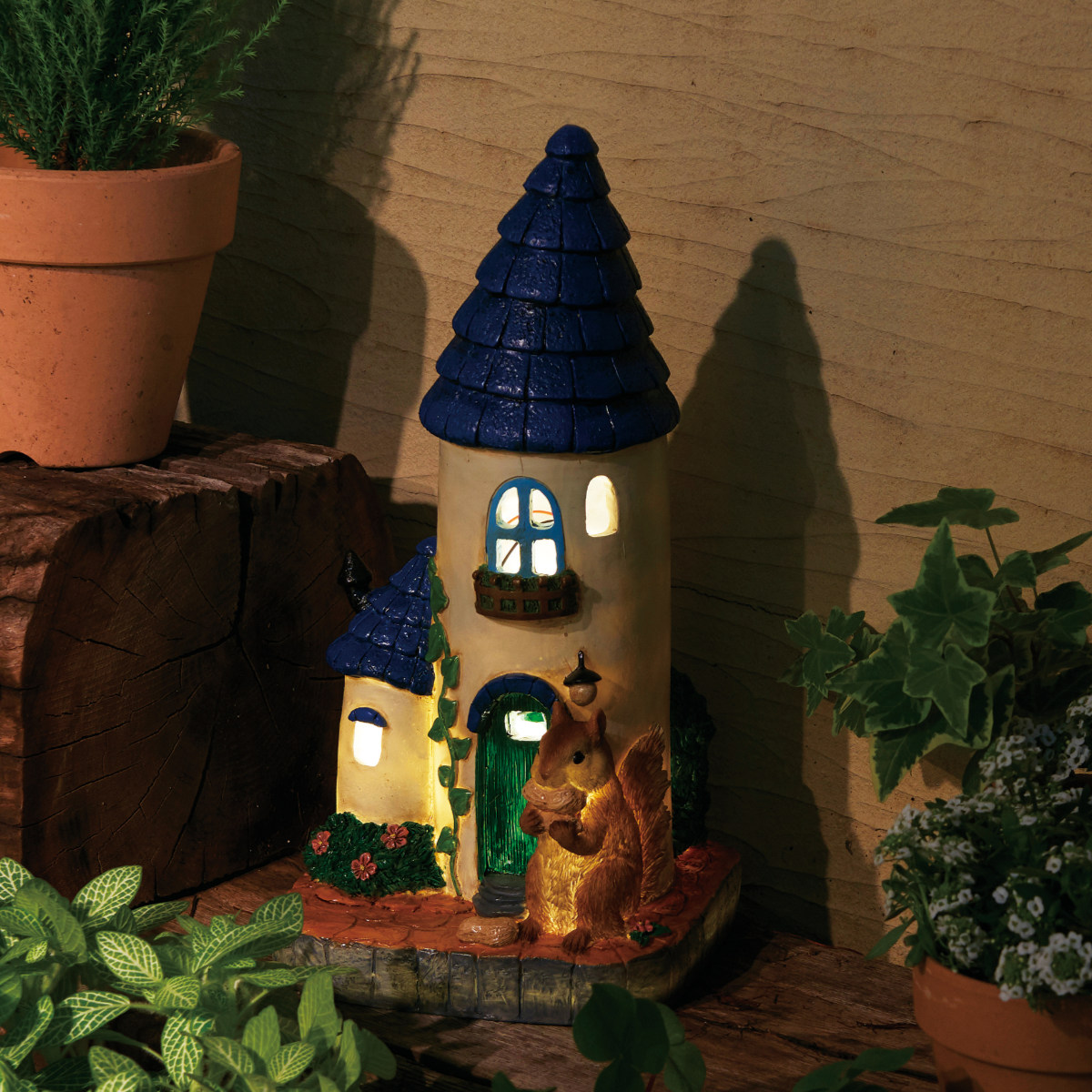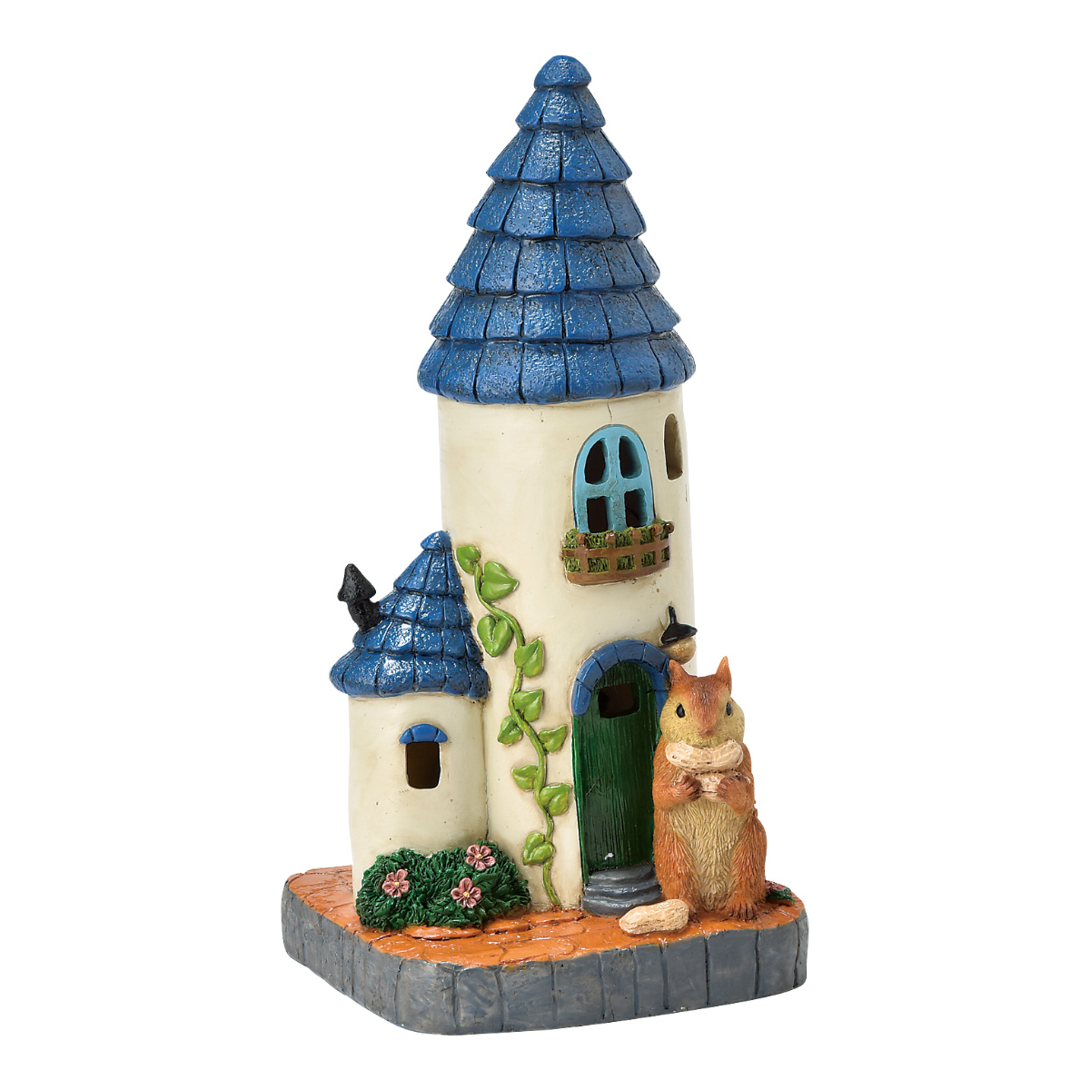 ガーデンオーナメント 青い屋根のおうち ソーラーオーナメント 光センサー LED ( ガーデンライト オブジェ 動物 オーナメント ソーラーライト ガーデンオブジェ ライト りす リス 家 おうち )