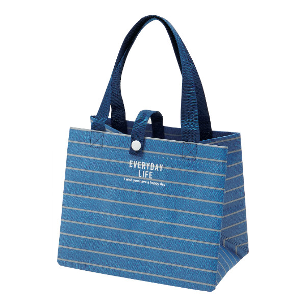 ランチバッグ 弁当用 エコバッグ デニム ボーダー 弁当袋 ( お弁当袋 お弁当用バッグ お弁当入れ マチ付き 底広 ランチトート 買い物 コンビニ弁当 お弁当箱 弁当 袋 サブバッグ )