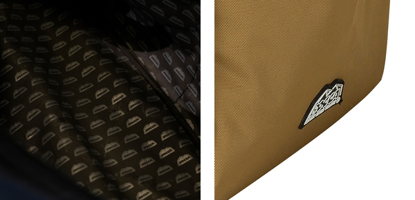 | 内側にはロゴパターン入り バッグの内側には、おしゃれなロゴパターンが入っています。 | 外側にはラバー素材のロゴ付き バッグの外側には、ラバー素材のロゴが付いています。 |