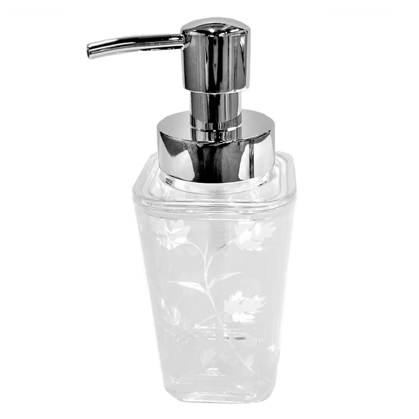 浮かび上がるような植物の葉のシルエットが美しいソープポンプです。泡で出てくるタイプのハンドソープや洗顔ソープに最適です。光沢のあるツヤ感にガラスのような透明感が魅力のアクリル製は、丈夫で割れにくく安心してお使いいただけます。
