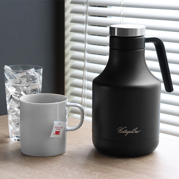 ポット 1.2L テーブルポット 真空断熱 ビンテージバー ステンレス 卓上ポット ( ステンレスポット 保冷 保温 ピッチャー ドリンクポット 保温ポット 魔法瓶 保温保冷 コードレス 持ち手付き アウトドア シンプル おしゃれ ) 【ブラック】