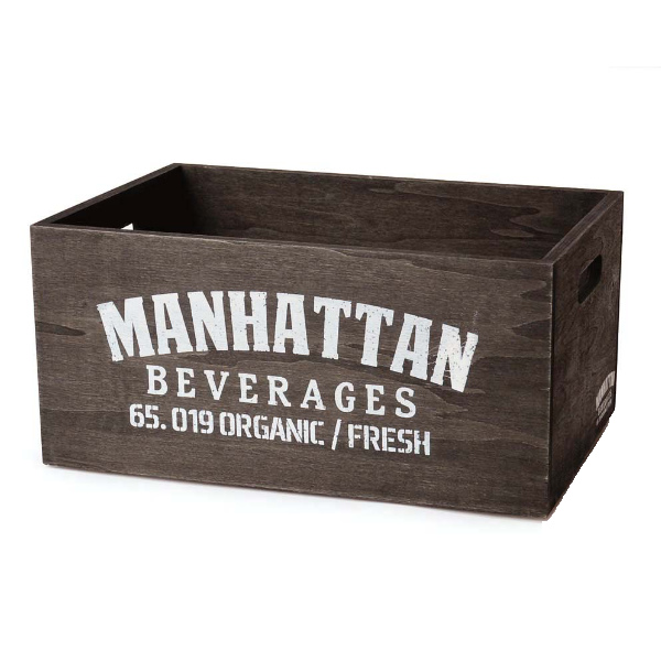 外国の市場に置いてあるような木箱をイメージした収納ボックス(L)です。両面にロゴが入っているのでどこから見てもかっこよく決まります。レトロ感漂うデザインとナチュラルな木製が、おしゃれで落ち着いた雰囲気を演出してくれます。野菜や買い置きの食料をいれても様になります。立てて棚のようにして使うこともできます。
