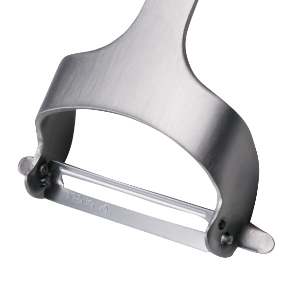 両端に芽取りがついているステンレスピーラーです。切れ味が良いので、野菜の皮をうすく引くことができます。