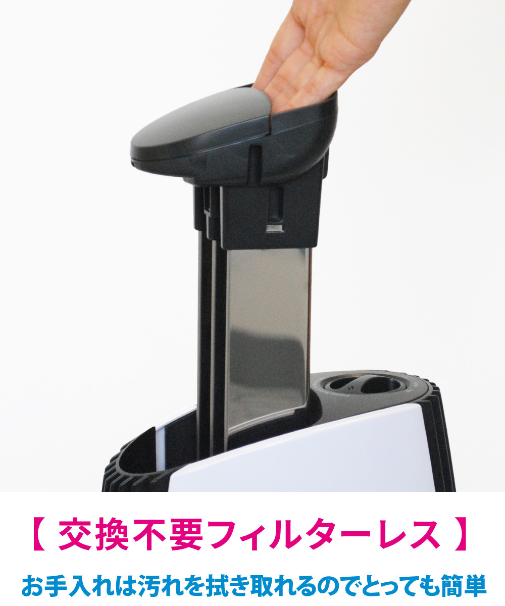 フィルターレスのため面倒な複数フィルターのお手入れが不要です。ホコリが吸着した集塵板は、ウェットティッシュ等で汚れを拭き取れるのでお手入れが簡単です。本体前後のカバーは外せるため、ハンディモップ等を使ってお掃除すれば清潔にお使いいただけます。