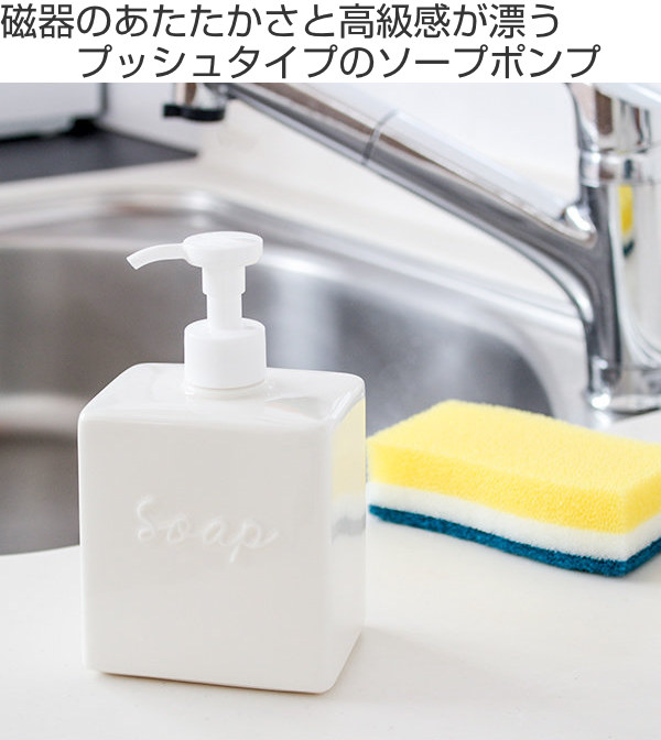 ディスペンサー 350ml ブロック ソープボトル 日本製 ハンドソープ 手洗い ( 詰替えボトル 液体せっけん ボトル 磁器 白磁 詰替え ポンプ 洗顔 洗剤 角型 スクエア 液体ハンドソープ 洗面 キッチン トイレ )