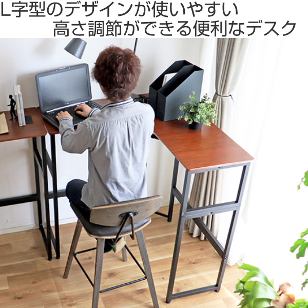 デスク 幅100cm L型 スタンディングデスク 高さ調整 テーブル ワークデスク 木製 スチール ( L字 コーナーデスク 幅 100 PCデスク パソコンデスク 立ち仕事 机 L字型 学習机 コンパクト 高さ 2段階 省スペース おしゃれ ) 【 ブラウン 】