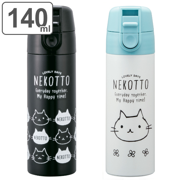 水筒 ミニ 140ml ステンレス ワンプッシュ ねこっと ( 直飲み 保温 保冷 ミニボトル マグ ボトル コンパクト ネコ ワンタッチ 直のみ すいとう ステンレスボトル ダイレクトボトル マグボトル スリム 広口 ねこ ) 【 黒 】