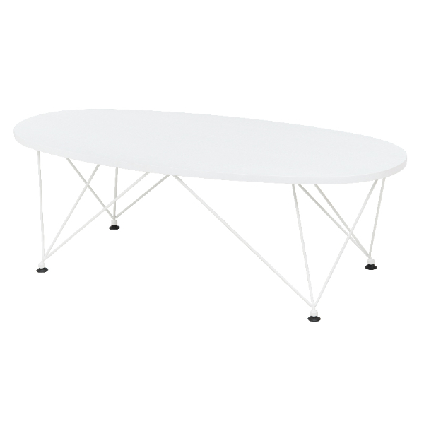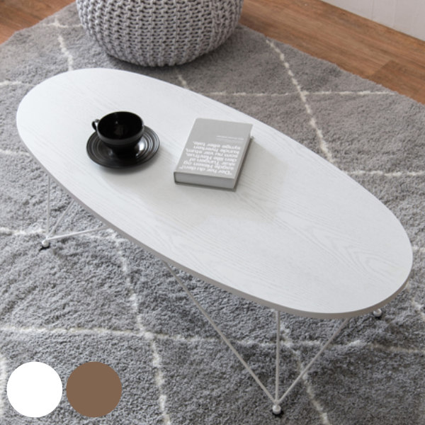センターテーブル 幅110cm 木製 天然木 突板 ローテーブル スチール脚 テーブル ( リビングテーブル ソファテーブル カフェテーブル 幅 110 机 リビング おしゃれ コーヒーテーブル 楕円 長方形 ウォールナット タモ ) 【 ホワイト 】
