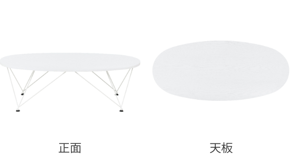 カラーによって天板の形が異なります。ホワイトは丸みを帯びた柔らかな印象の天板です。ブラウンは緩やかなカーブを描いたスクエア型の天板です。用途やお部屋の雰囲気に合わせてお選びいただけます。