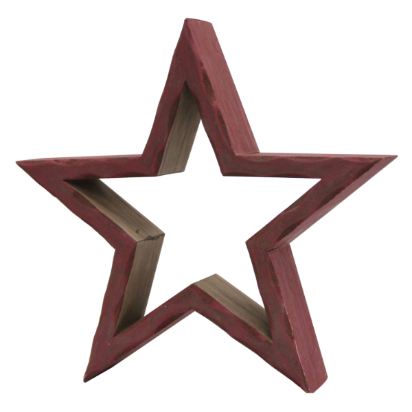 星 L ウッデンホロースター 木製 インテリア 置物 ( オブジェ 雑貨 オーナメント 飾り 星型 エイジング加工 レトロ風 おしゃれ 卓上 ディスプレイ アメリカン風 玄関 リビング ) 【 レッド 】