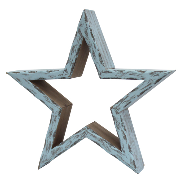 星 L ウッデンホロースター 木製 インテリア 置物 ( オブジェ 雑貨 オーナメント 飾り 星型 エイジング加工 レトロ風 おしゃれ 卓上 ディスプレイ アメリカン風 玄関 リビング ) 【 ブルー 】