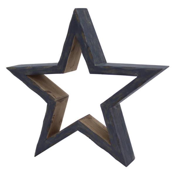 星 L ウッデンホロースター 木製 インテリア 置物 ( オブジェ 雑貨 オーナメント 飾り 星型 エイジング加工 レトロ風 おしゃれ 卓上 ディスプレイ アメリカン風 玄関 リビング ) 【 ネイビー 】
