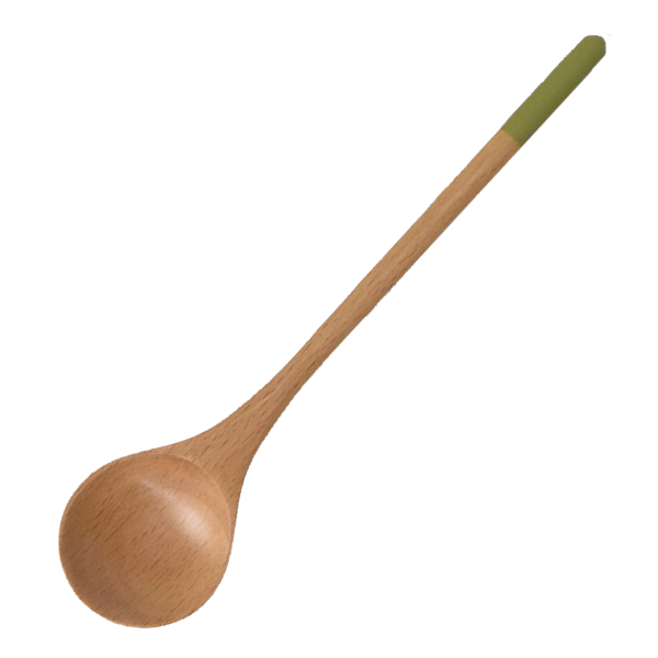 天然木を使用したナチュラルテイストのスプーンに、伝統色の彩りがアクセントになっています。スープを飲む時や、リゾットやシリアルを食べる時にもちょうど良いサイズです。