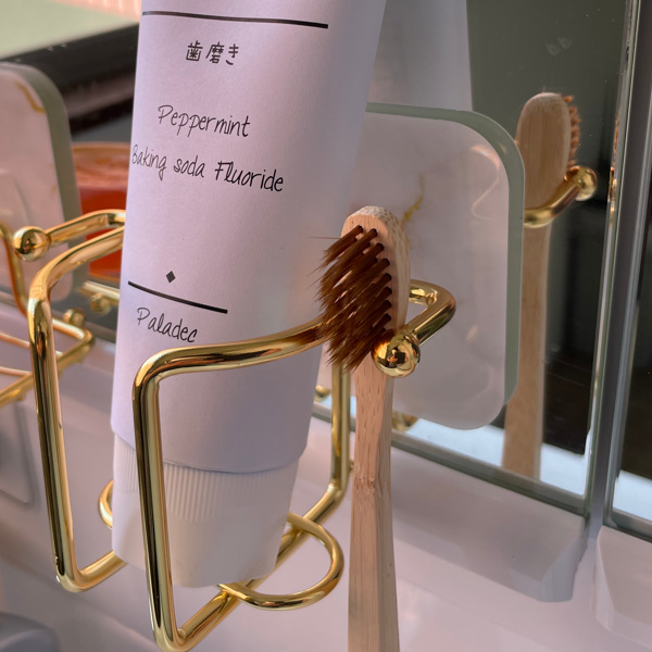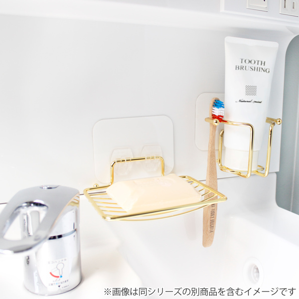 ハミガキ粉ホルダー オテル マーブル チューブホルダー 吸着 洗面 洗面所 ( 吸着シート ホルダー 吸着シートホルダー 歯磨き粉 ゴールド スタンド 歯みがきスタンド 洗顔 傷つけない 貼れる はがせる 収納用品 水に強い 白 無地 )