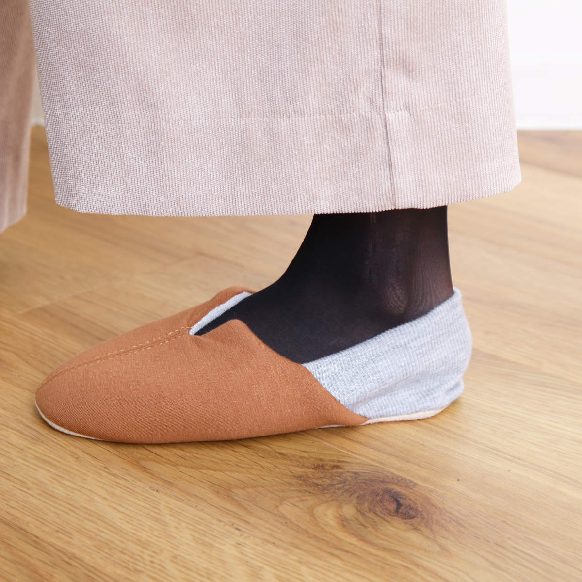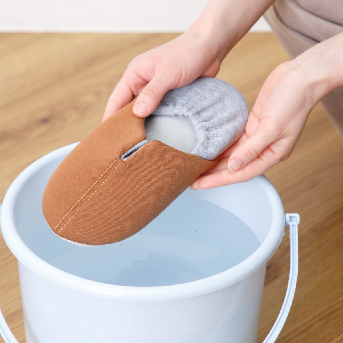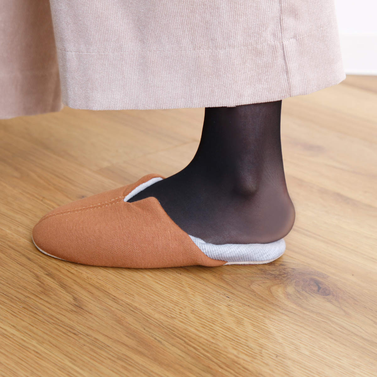 底面には滑りにくい生地を使用しています。フローリングなどの床材に優しく、パタパタ音が鳴りにくいので、日常使いに適しています。
