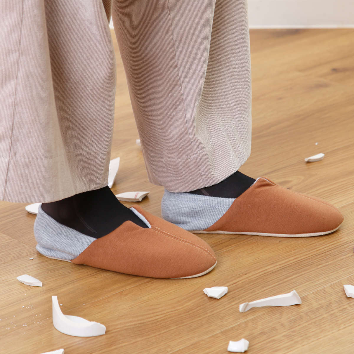 機能性とデザイン性を兼ね備えた防災スリッパです。いつ起こるか分からない災害に備えて、普段から履けるので便利です。