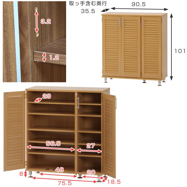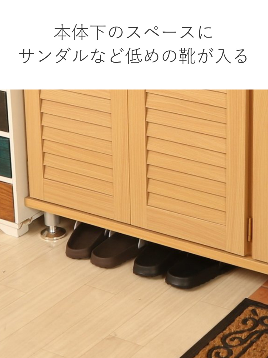 下駄箱 ルーバー ワイド 幅90.5cm 奥行35.5cm 高さ101cm 組立品 ( シューズボックス げた箱 くつ 靴 収納 シューズラック 玄関収納 幅90.5 シューズBOX キャビネット 収納庫 シューズ ラック 木目調 おしゃれ ) 【ブラウン】
