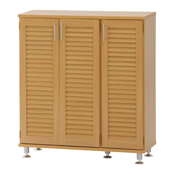 下駄箱 ルーバー ワイド 幅90.5cm 奥行35.5cm 高さ101cm 組立品 ( シューズボックス げた箱 くつ 靴 収納 シューズラック 玄関収納 幅90.5 シューズBOX キャビネット 収納庫 シューズ ラック 木目調 おしゃれ ) 【ナチュラル】
