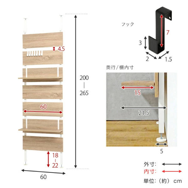 | サイズ | 約 幅60×奥行21.5×高さ200~265 (cm) |