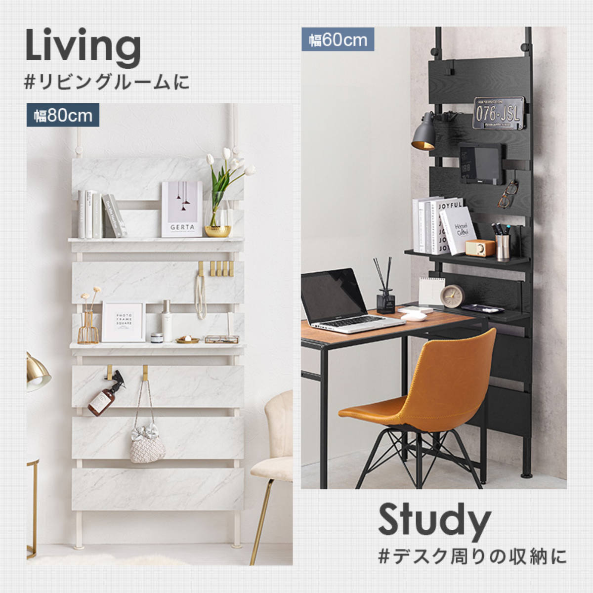 工事不要で、簡単に設置できる突っ張りウォールラック 幅60cm
