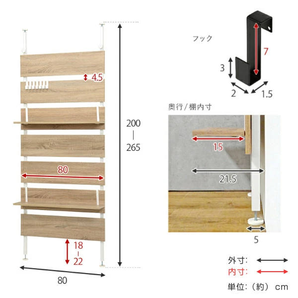 | サイズ | 約 幅80×奥行21.5×高さ200~265 (cm) |