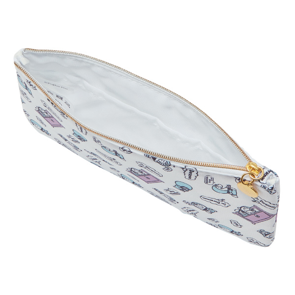 ポーチは薄型で、かばんにも入れやすいサイズです。中面にはポケットがついているので、細々したものも仕分けて入れられます。化粧ポーチや小物入れなどに便利です。