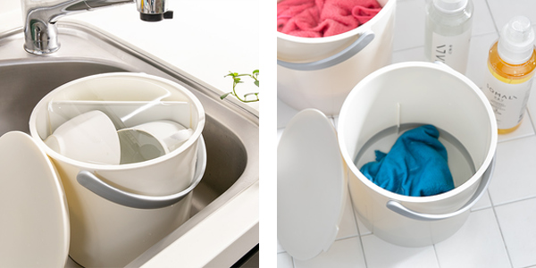 密封性があるのでオムツや分別用のゴミなど臭いが気になる物も入れられます。つけ置き洗いの洗剤の臭いも気になりません。またお子様やペットが中身を触って欲しくない時にも便利なフタつきです。