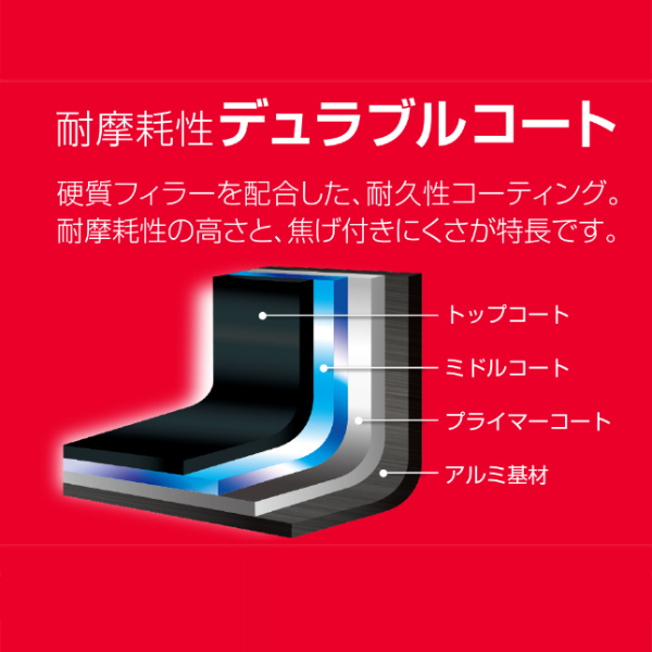 耐摩耗性が高く焦げつきにくい、デュラブルコートを採用