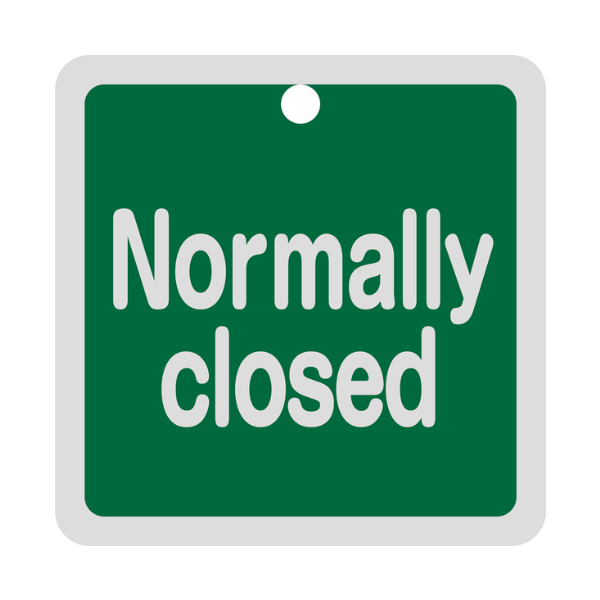 アルミバルブ開閉札 英文字 緑 「 Normally closed 」 5×5cm 両面表示 ( 5cm 角型 アルミ 日本製 両面印刷 バルブ 開閉 札 安全 表示 表示板 フダ ふだ 事業所 工場 現場 作業 用品 グッズ 安全用品 )