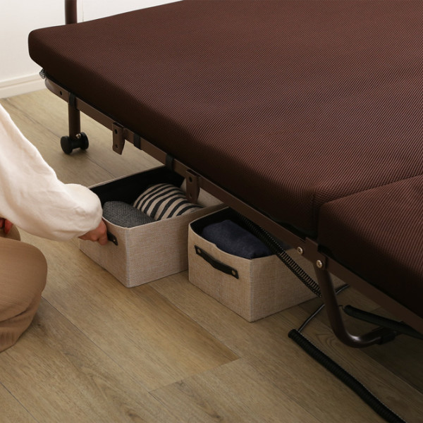 床から約30cmの高床タイプで、腰掛けたり立ち上がるのにちょうど良い高さのベッドです。布団から立ち上がるのが大変な高齢の方にもおすすめです。高さを活かして、ベッド下を収納スペースとして活用することもできます。