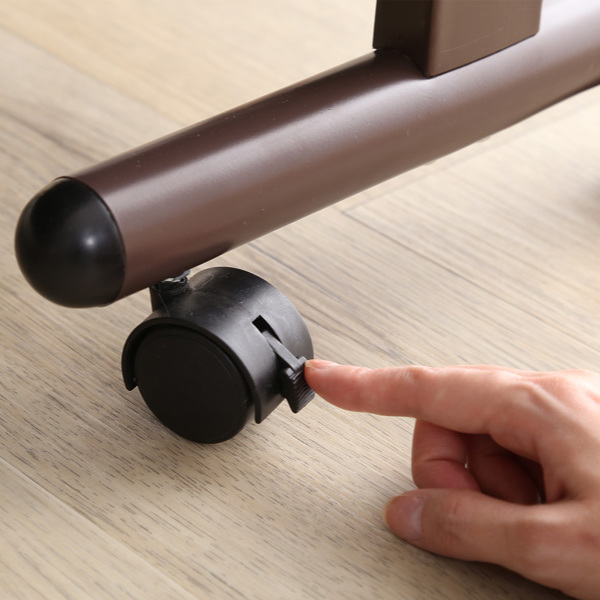 ベッド脚にはキャスターが付いています。ベッド使用時には固定できるストッパー機能付で安全にご使用いただけます。キャスターは360度回転式で、掃除などの移動の際もスムーズに動かすことができます。