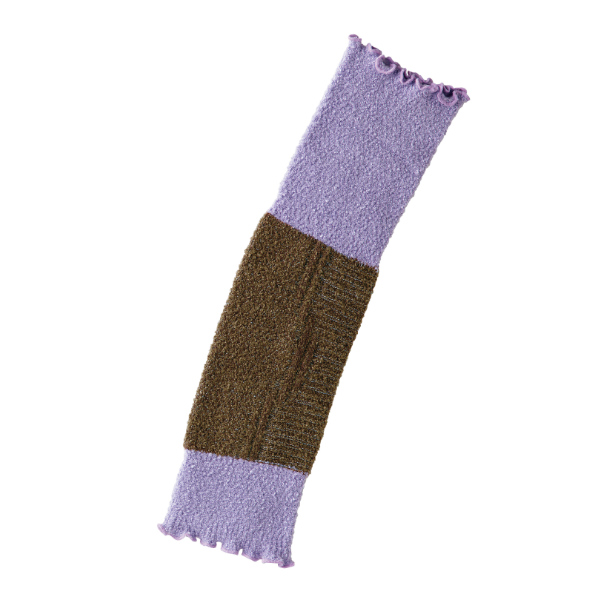 茶色の膝部分にはウールを混紡した遠赤外線セラミック練り込み繊維の「ホットレイ」を使用しています。膝を集中的に保温します。