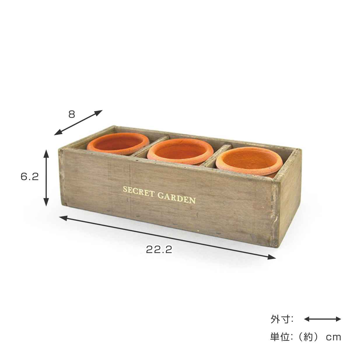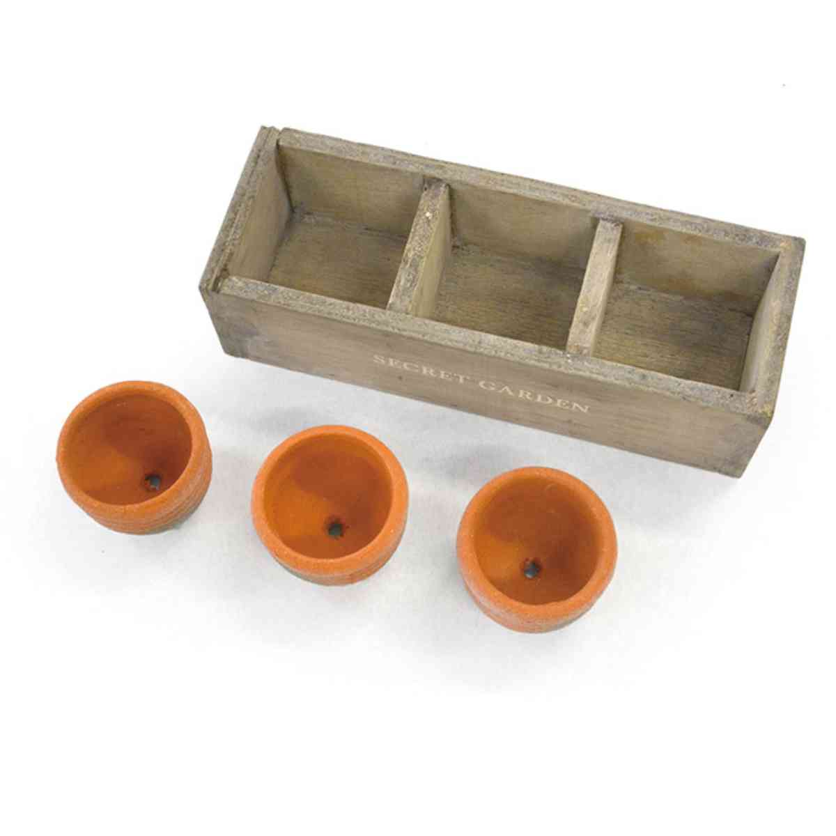 プランター 木箱ボックス テラコッタポット3個付き L ( テラコッタ 鉢 植木鉢 プラントポット 素焼き 鉢植え テラコッタポット ボックス付き ポット シンプル 丸型 素焼きポット フラワーポット インテリア 園芸 おしゃれ )
