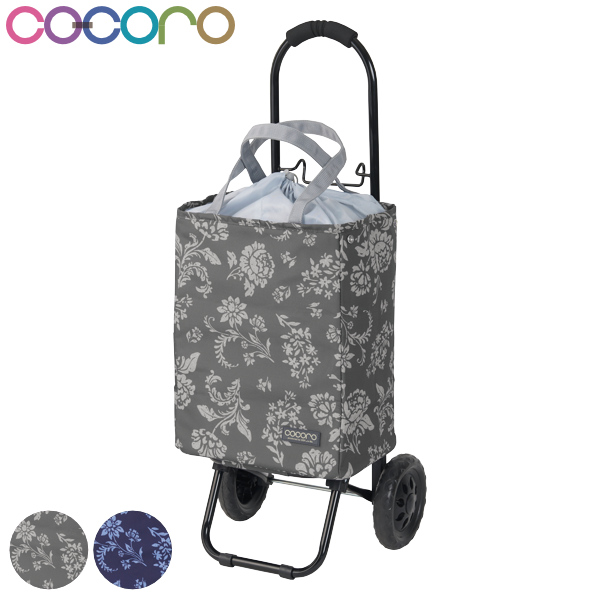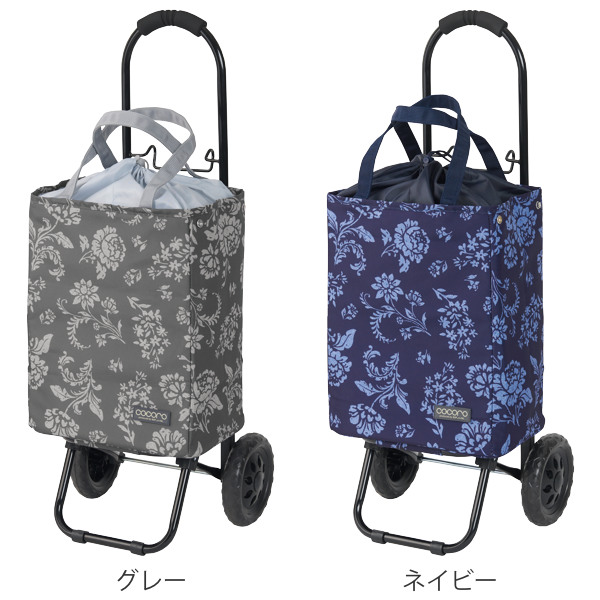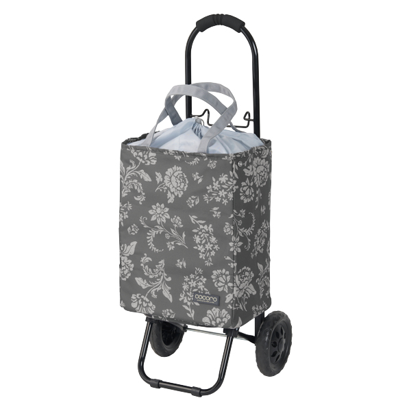 ショッピングカート cocoro フロリアン 折りたたみ おしゃれ 大容量 軽い 保冷 ( キャリーカート 2輪 買い物 保温 バッグ トートバッグ カート 買い物用キャリーバッグ ショルダーバッグ 軽量 スチール グレー ネイビー ) 【 グレー 】