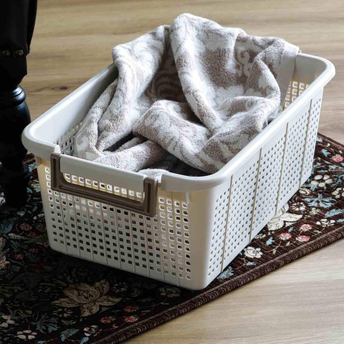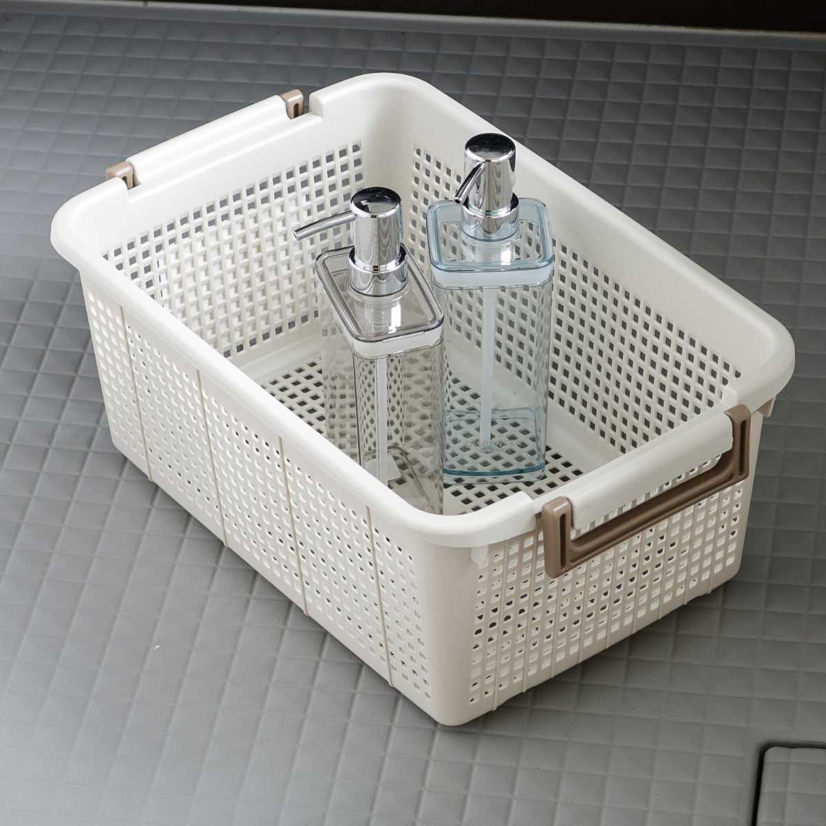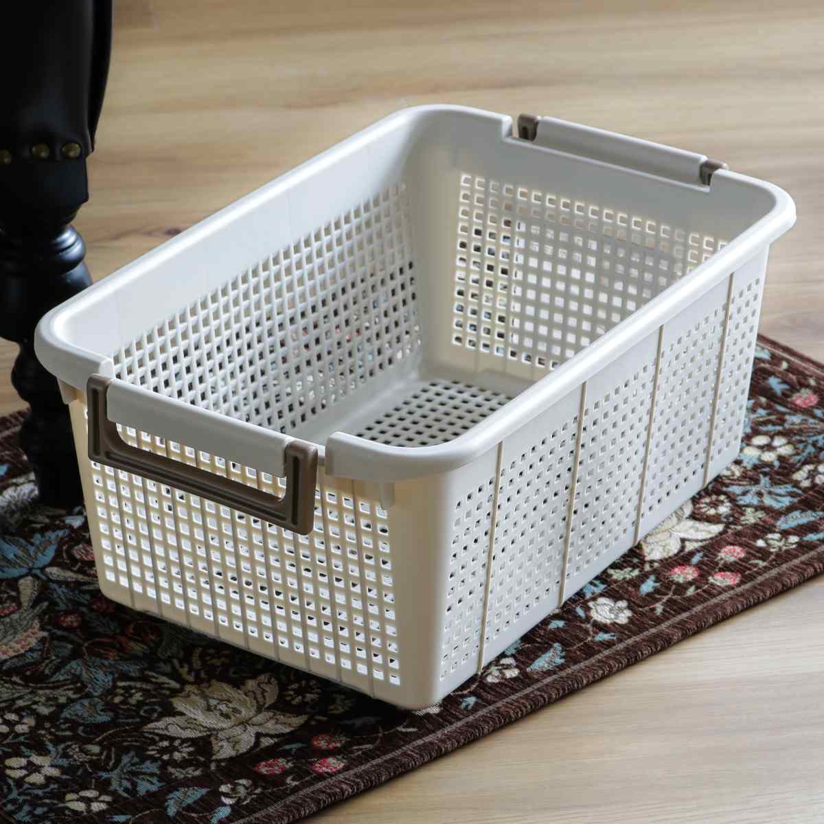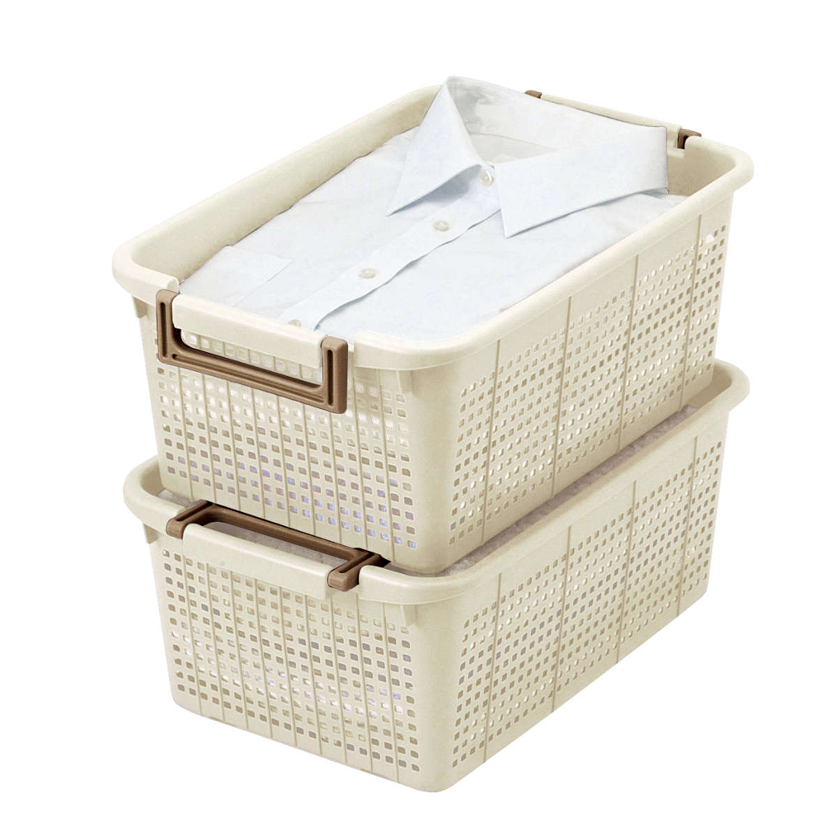 バスケット M 幅28×奥行43×高さ17.5cm スタッキング ( 収納ケース 積み重ね 収納ボックス 持ち手付き 収納 ケース ボックス 収納バスケット プラスチック ストッカー クローゼット収納 日本製 ) 【アイボリー】のレビュー