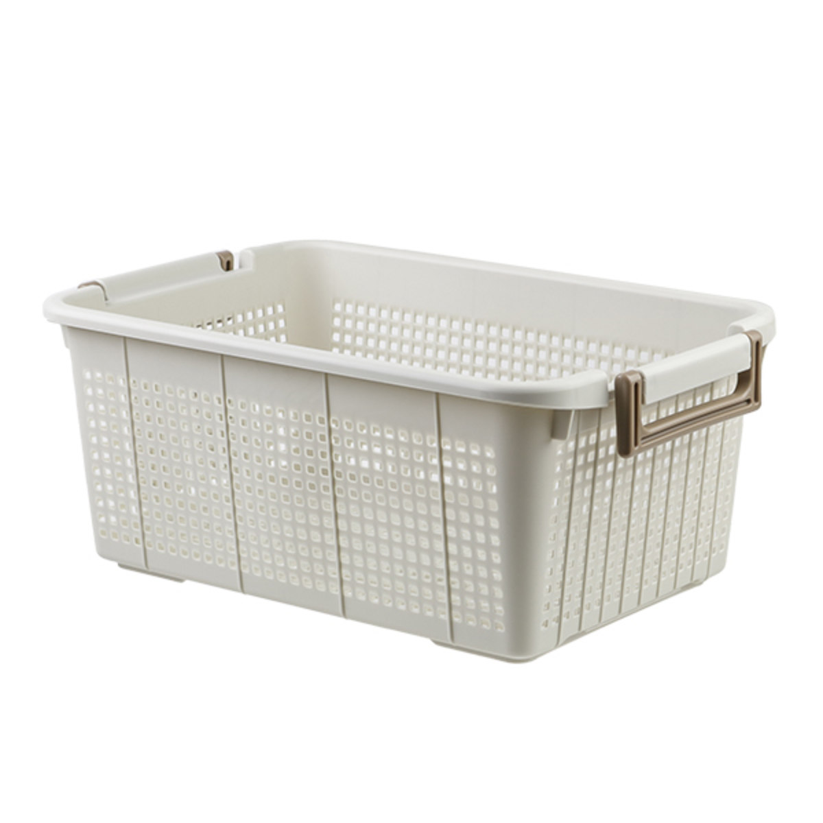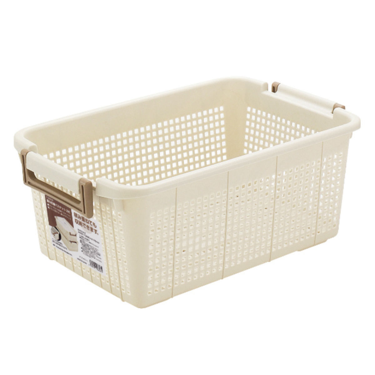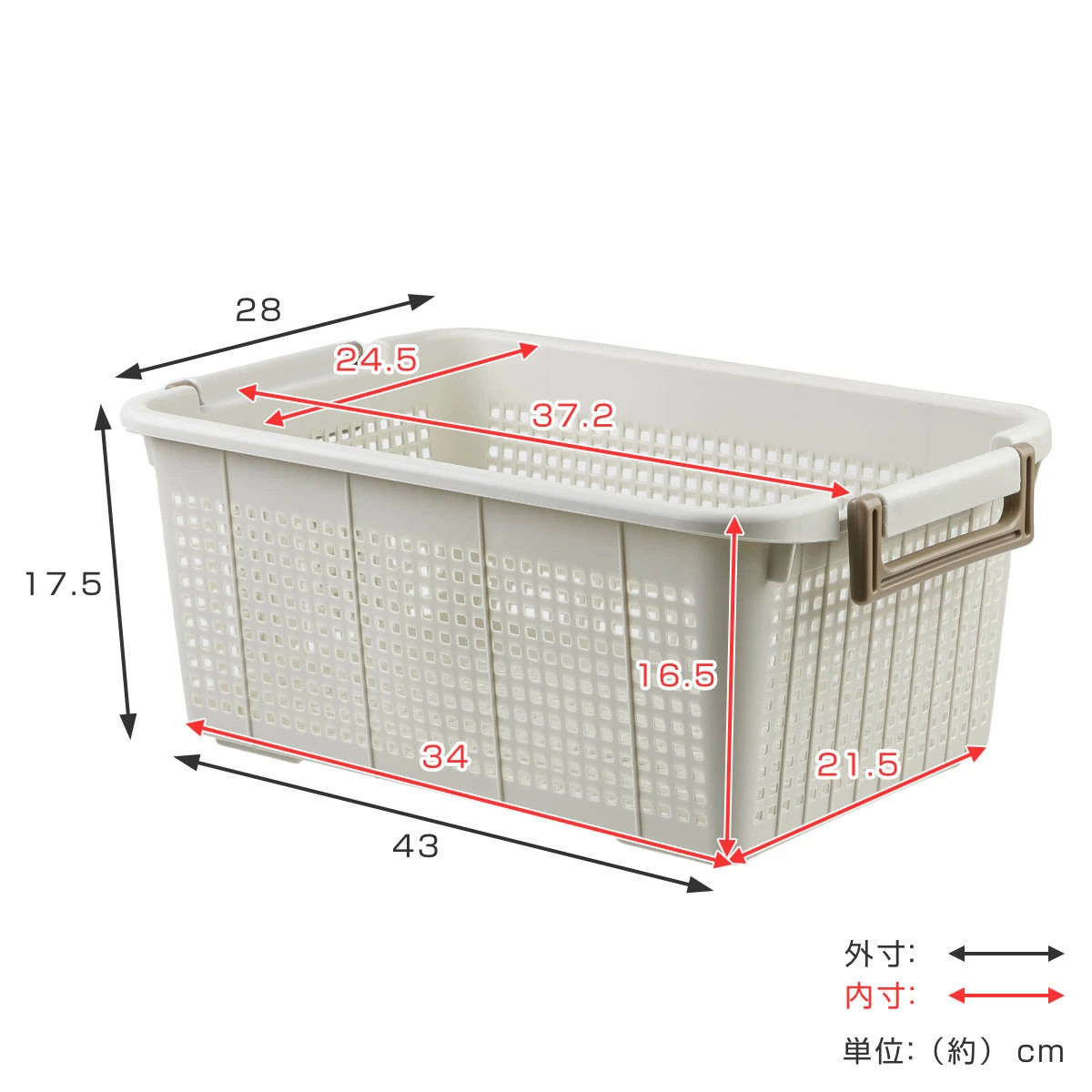 バスケット M 幅28×奥行43×高さ17.5cm スタッキング ( 収納ケース 積み重ね 収納ボックス 持ち手付き 収納 ケース ボックス 収納バスケット プラスチック ストッカー クローゼット収納 日本製 ) 【アイボリー】