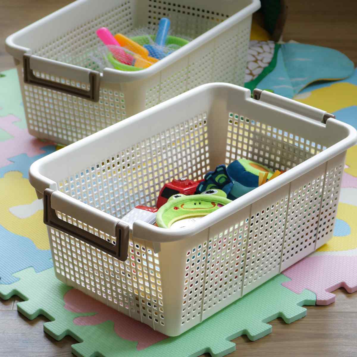 おもちゃの収納に最適です。収納バスケットに入れるだけでリビングや子供部屋がスッキリするので、お片付けが苦手なお子さまも簡単に整理整頓の習慣が身に付きそうです。