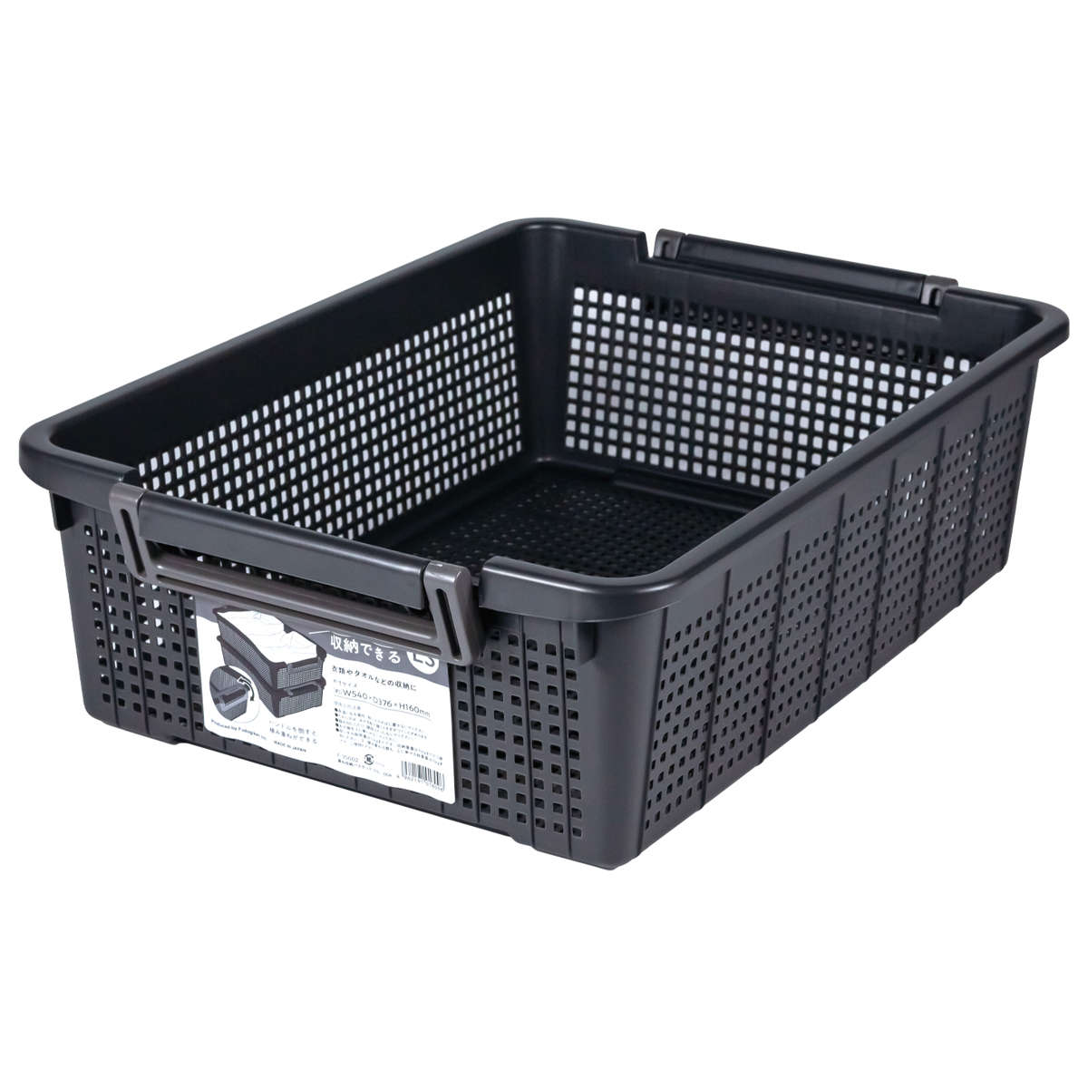 積み重ねができる構造の収納バスケットです。縦のスペースを有効活用できて便利です。2段積み重ねた時の高さは約32cmです。