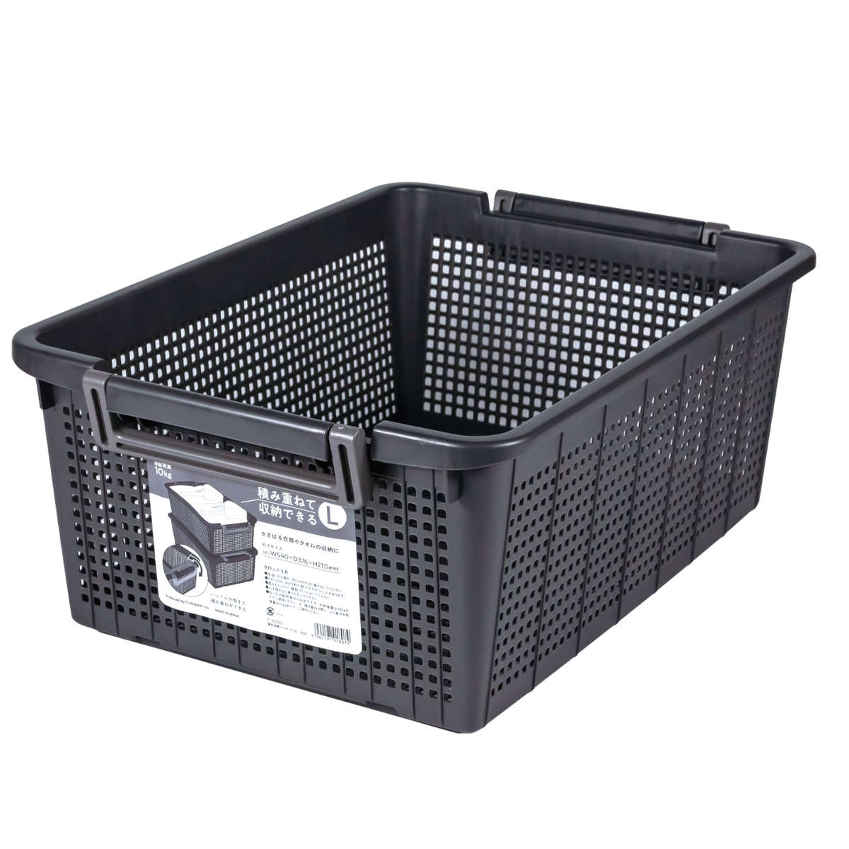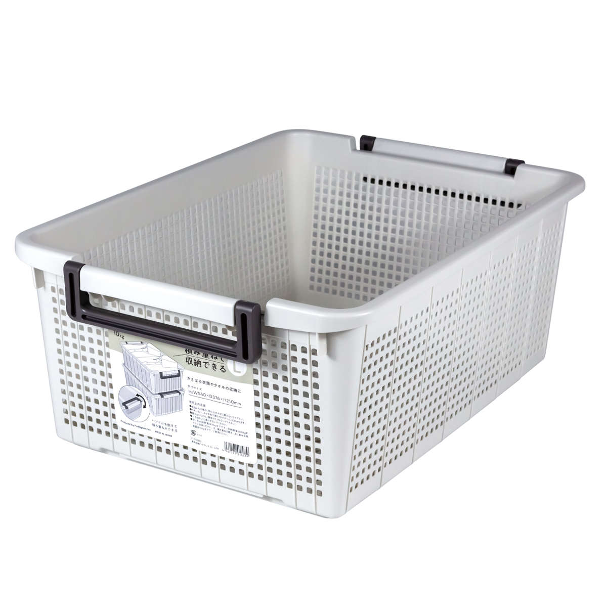 バスケット L 幅37.6×奥行54×高さ21cm スタッキング ( 収納ケース 積み重ね 収納ボックス 持ち手付き 収納 ケース ボックス 収納バスケット プラスチック ストッカー クローゼット収納 日本製 ) 【ライトグレー】