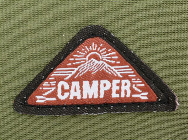 ネオプレン生地を使用したアイテムシリーズ「CAMPER」の織りネーム入りです。