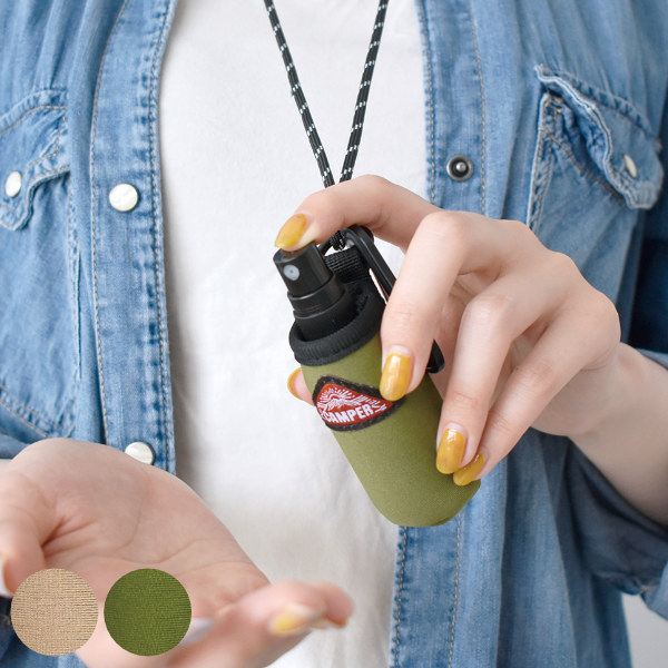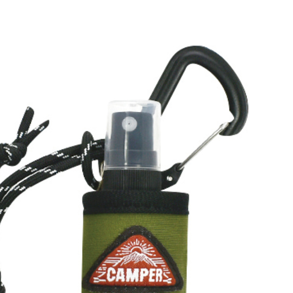 30mlのスプレーボトルがぴったり入ったボトルホルダーです。アルコールや消毒用エタノール等を入れて持ち運ぶことができ、アウトドアはもちろん、学校やオフィス、外出先で気になった時にお使いいただけます。