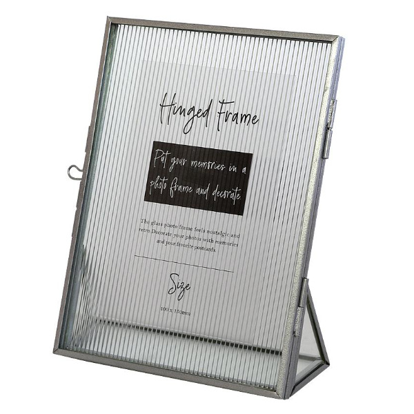 フォトフレーム ピンストライプ ガラス ヒンジドフレーム アンティーク ( 写真立て フォトスタンド 卓上 おしゃれ インテリア 写真スタンド レトロ ディスプレイ ガラスフレーム アートフレーム 縦置き オブジェ 置物 鉄 アイアン ) 【 シルバー 】