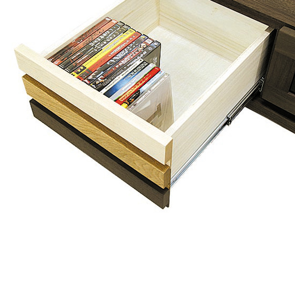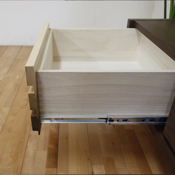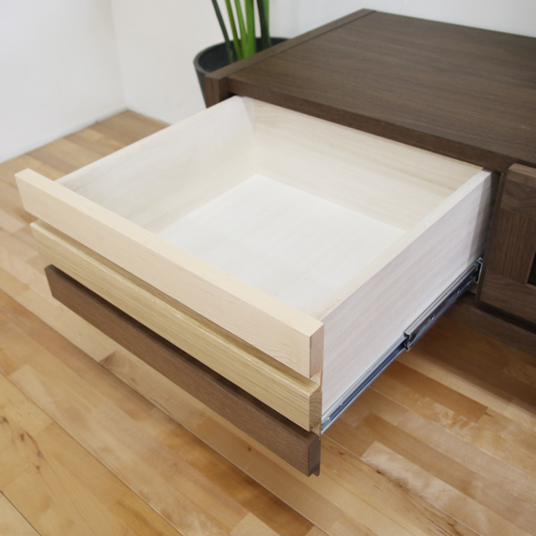 フルオープンレールを使用しており、引出し全体が手前に引き出せるので、奥の物もスムーズに取り出せます。また引出しは桐材を使用しており、防湿・防虫・耐火性の効果があります。