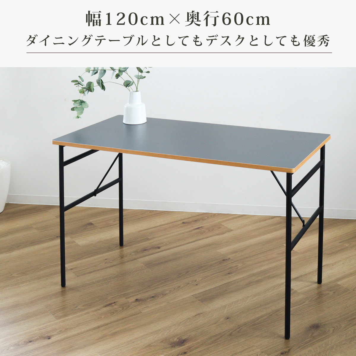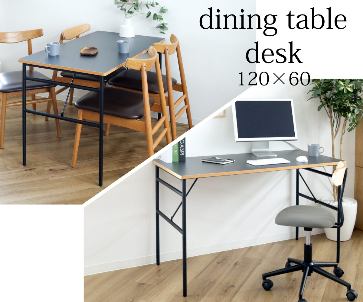 天板のサイズ幅120cm×奥行60cmはダイニングテーブルとしてはコンパクト。一人暮らしや狭いお部屋などに丁度いいサイズ感です。