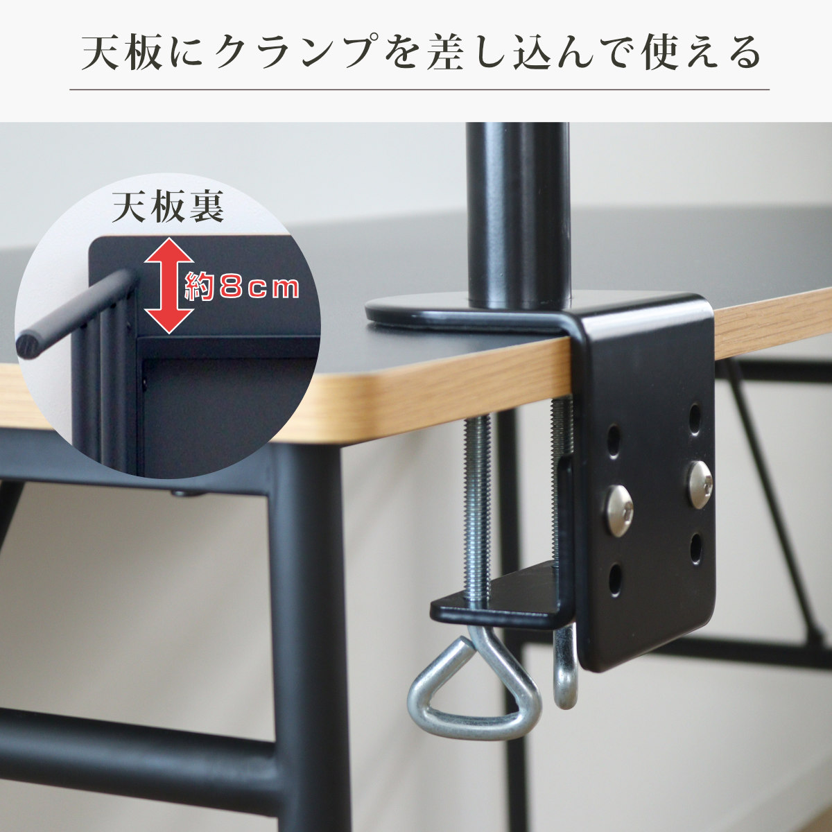 天板にクランプを差し込んで使える