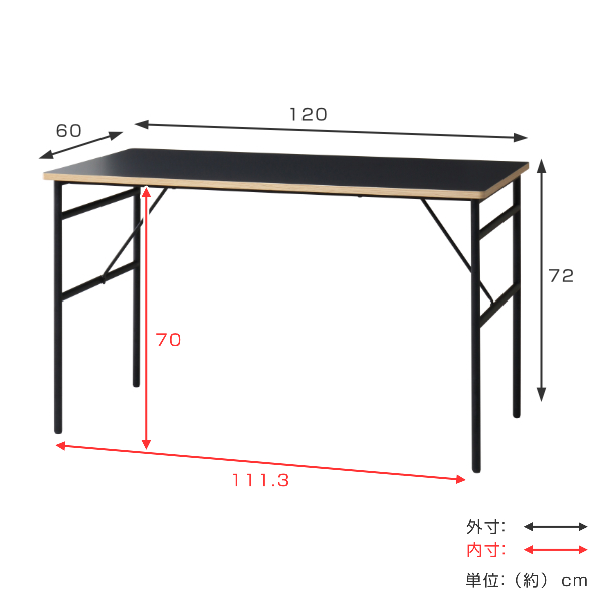| サイズ | 約 幅120×奥行60×高さ72(cm) |