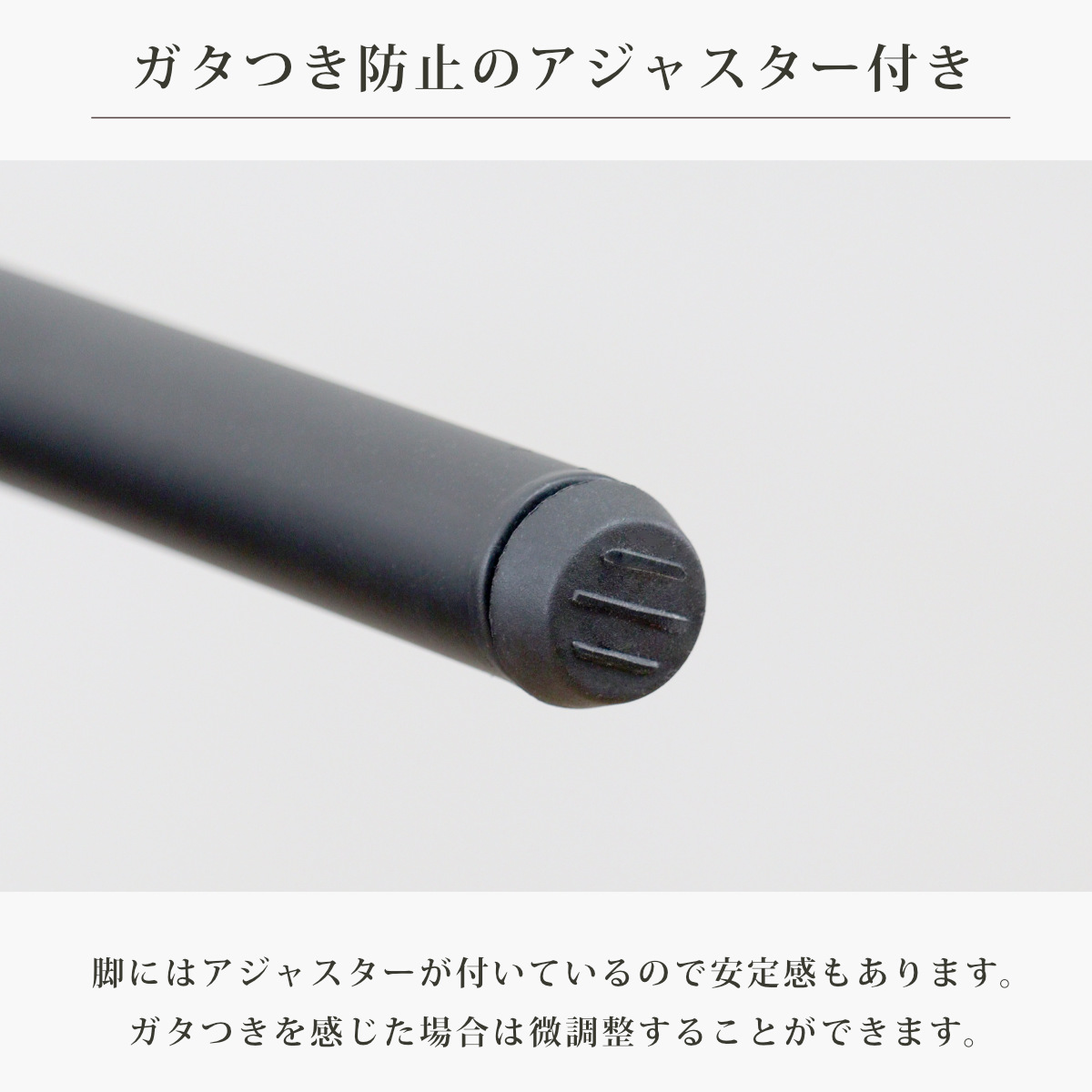 脚にはアジャスターが付いているので安定感もあります。ガタつきを感じた場合は微調整することができます。