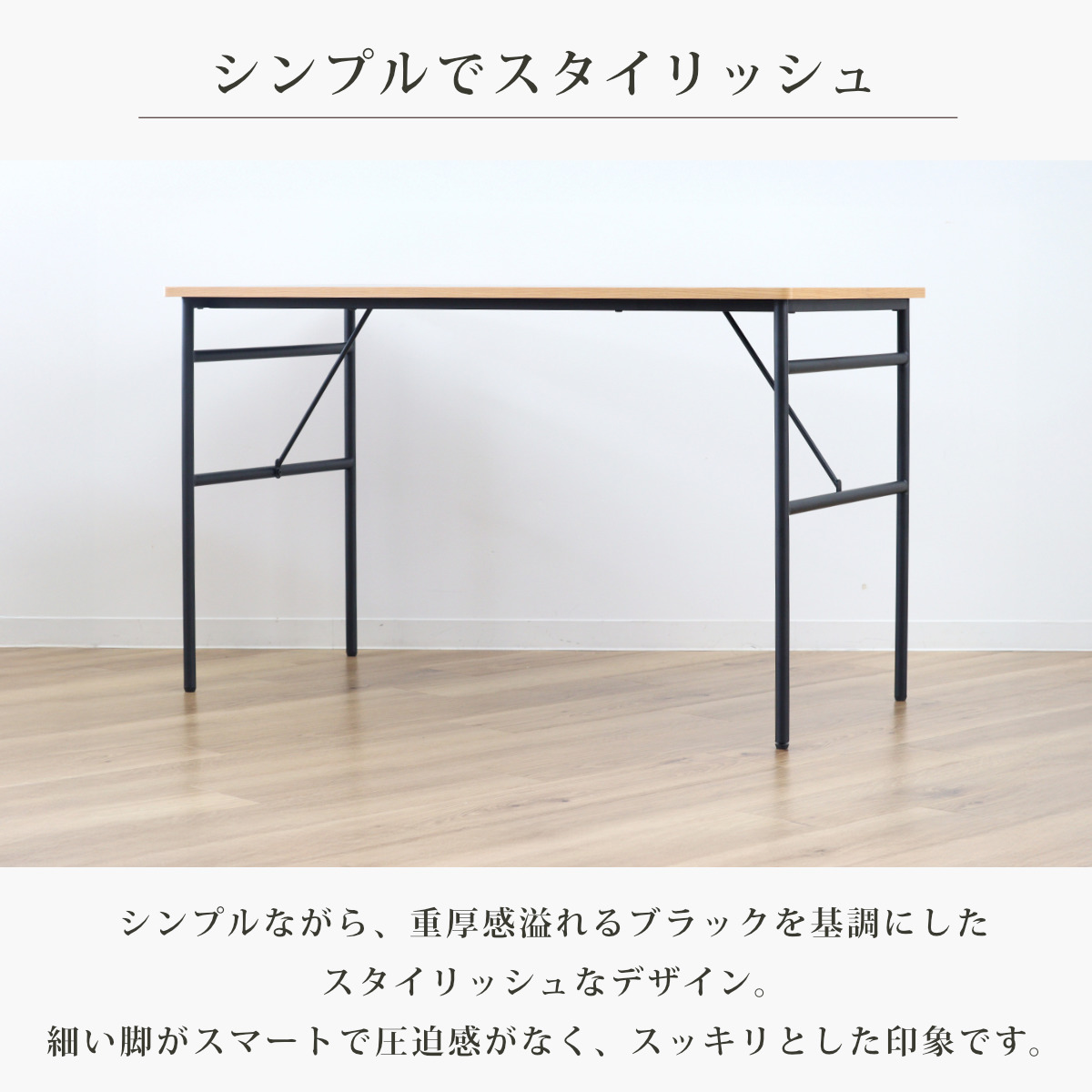シンプルながら、重厚感溢れるブラックを基調にしたスタイリッシュなデザイン。細い脚がスマートで圧迫感がなく、スッキリとした印象です。